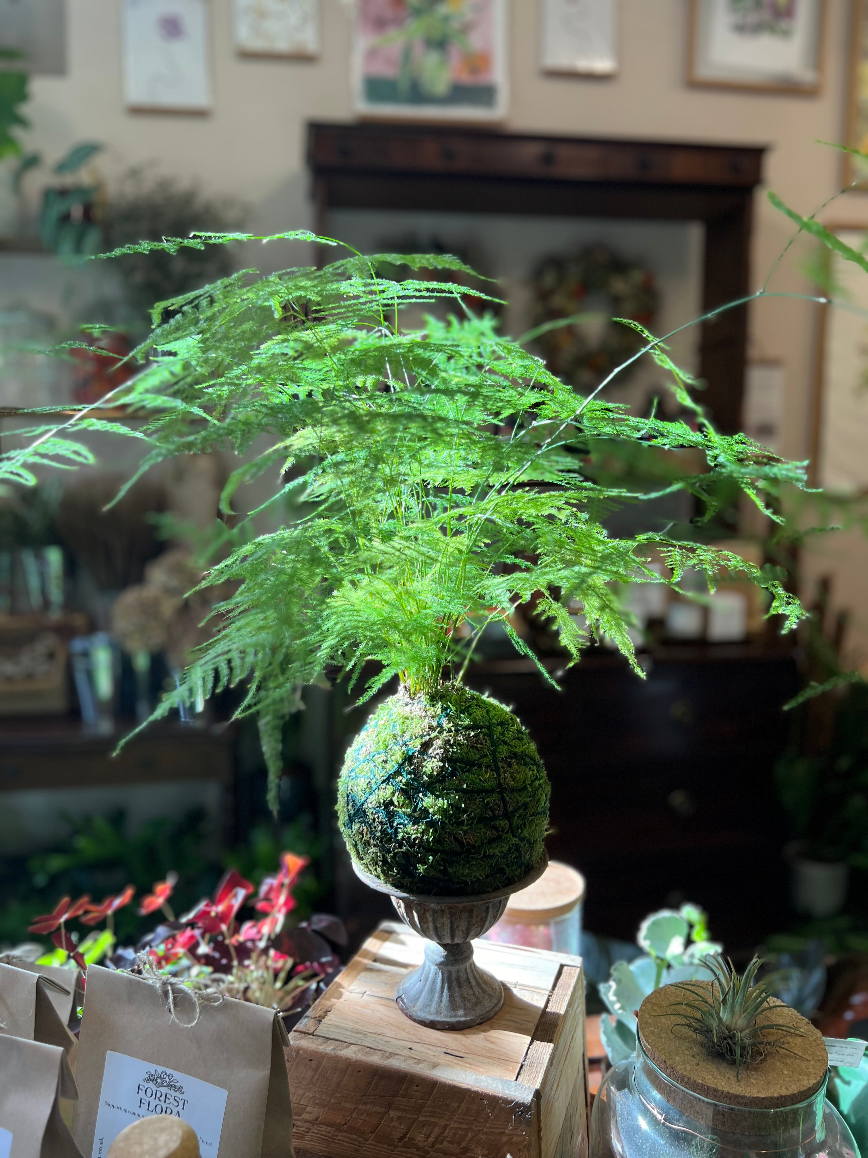 This Japanese planting style uses moss ‘koke’ to cover a plant’s root ball - ‘dama' meaning 'ball.' You will learn how to bind a mix of akadama soil and coco coir (peat substitute) in sphagnum moss which then holds the water and nutrients close to the root system, creating a 'moss ball' almost like a natural plant pot.